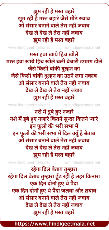 Lyrics of Jhum Rahi Hai Mast Bahaare - झूम रही है मस्त बहारे
