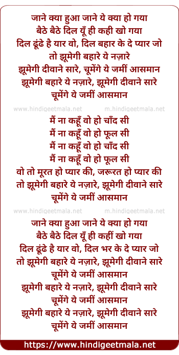 Lyrics of Jhumengee Bahare Yeh Najare - झूमेंगी बहारे ये नजरे