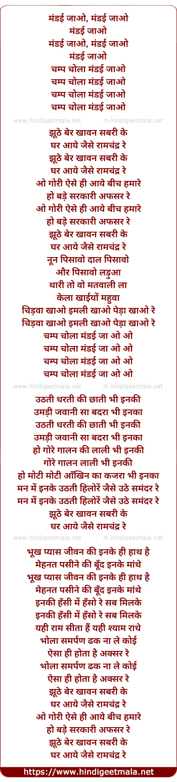 Poetic Translation - Lyrics of Jhuthe Ber Khavan Shabri - झूठे बेर खावन सबरी