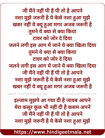 Lyrics of Ji Maine Nahi Pi Hai - जी मैंने नहीं पी हैं