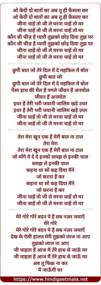 o kaidi do baate ka ab tu hi faisla kar