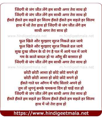 Lyrics of Jindagee Se Jung Jit Lenge Ham - जिंदगी से जंग जीत लेंगे हम