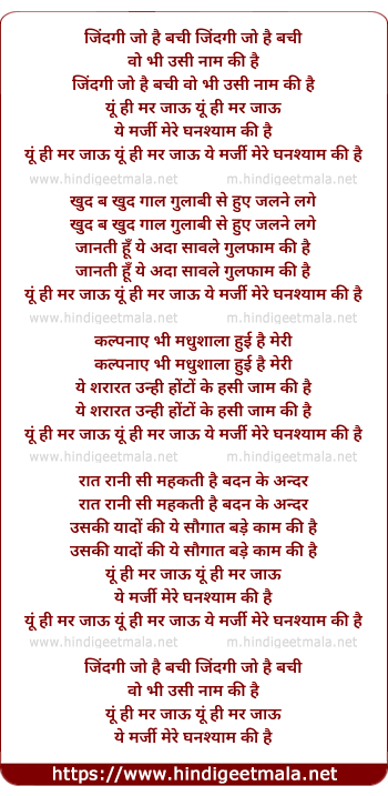 Lyrics of Jindagi Jo Hai Bachi - जिंदगी जो है बची