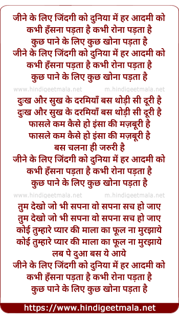 Poetic Translation - Lyrics of Jine Ke Liye Jindagi Ko Female - जीने के लिए जिंदगी को
