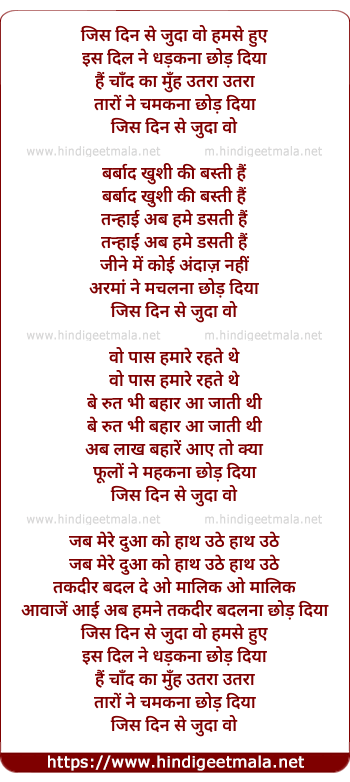 Lyrics of Jis Din Se Juda Wo Humse Hue - जिस दिन से जुदा वो हमसे हुए