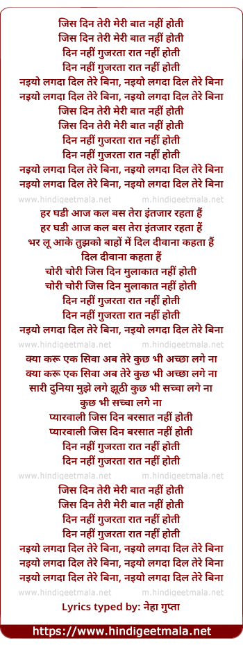 Lyrics of Jis Din Teri Meri - जिस दिन तेरी मेरी