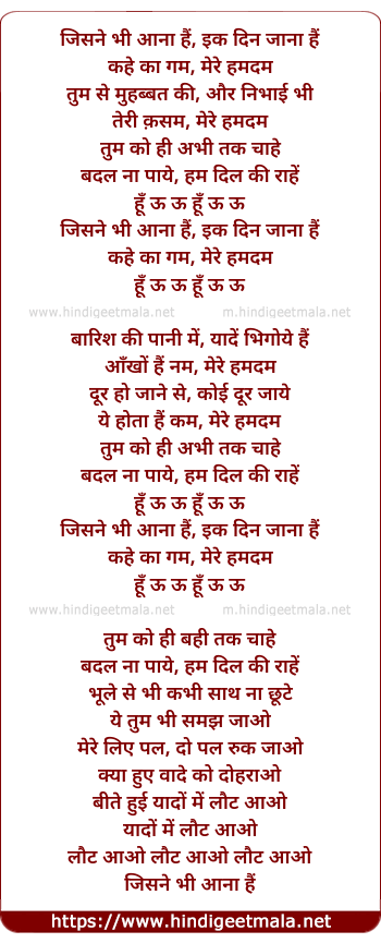 Lyrics of Jis Nay Bhi Aana Hai - जिसने भी आना हैं, इक दिन जाना हैं