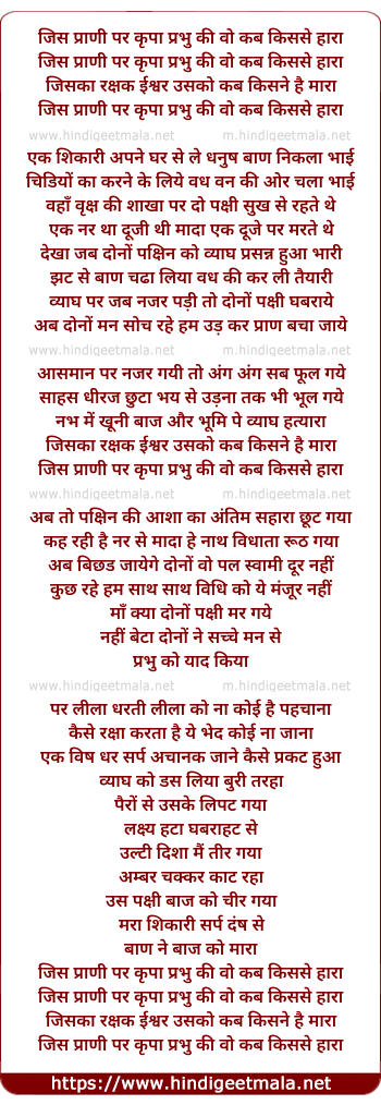 Lyrics of Jis Praani Par Kripa - जिस प्राणी पर कृपा