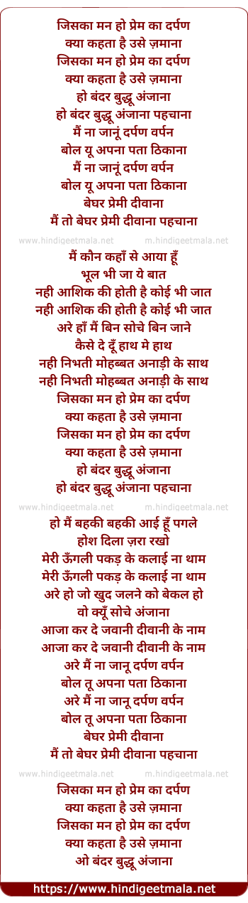 Lyrics of Jiska Man Ho Prem Ka Darpan - जिसका मन हो प्रेम का दर्पण