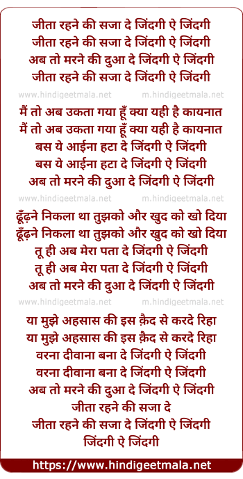 Lyrics of Jita Rahne Ki Saza De Zindagi Ae Zindagi - जीता रहने की सजा दे जिंदगी ऐ जिंदगी