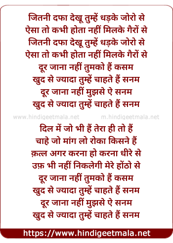 jitni dafa dekhu tumhe dhadke zoro se