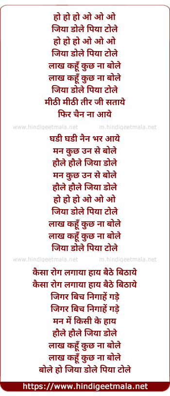 Lyrics of Jiya Dole Lakh Kahu Kuch Na Bole - हो हो हो ओ ओ ओ
