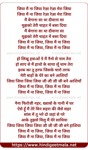 jiya main na jiya reza reza mera jiya