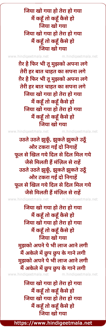 Lyrics of Jiya Kho Gaya O Tera Ho Gaya - जिया खो गया ओ हो तेरा हो गया