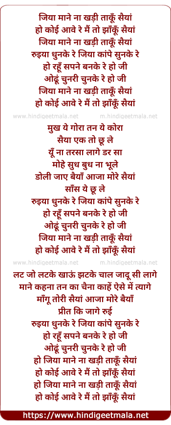 Lyrics of Jiya Maane Na Khadi Taaku Saiyya - जिया माने ना खड़ी ताकूँ सैयां