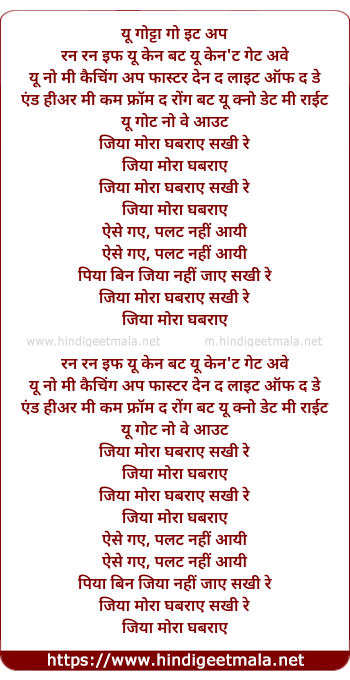 Lyrics of Jiya Mora Ghabraaye - यू गोट्टा गो इट अप