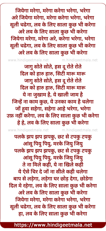 Lyrics of Jiyega Marega, Marega Karega Bharega, Bharega - जियेगा मरेगा, मरेगा करेगा भरेगा, भरेगा