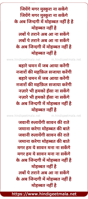 Lyrics of Jiyenge Magar Muskura Na Sakenge - जियेंगे मगर मुस्कुरा ना सकेंगे