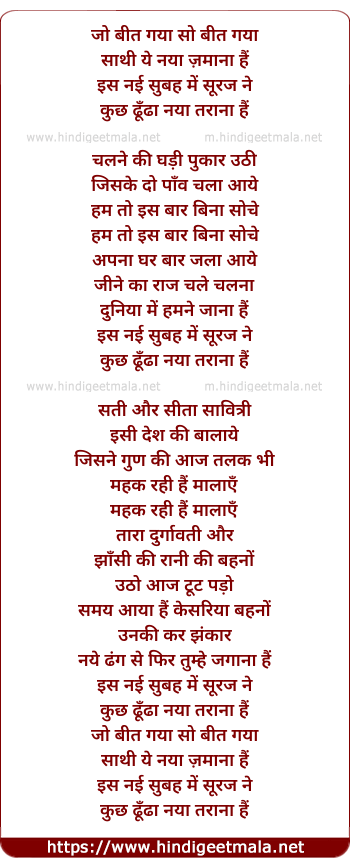 Lyrics of Jo Beet Gaya So Beet Gaya - जो बीत गया सो बीत गया