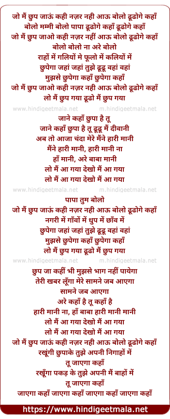 Lyrics of Jo Main Chhup Jaau - जो मैं छुप जाऊं
