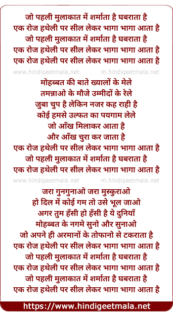 Lyrics of Jo Pehli Mulakat Me Sharmata Hai Gabrata Hai - जो पहली मुलाकात में शर्माता है घबराता है