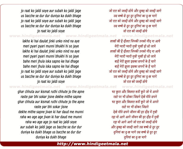 Comments for lyrics of song "Jo Raat Ko Jaldi Soye Aur Subah Ko Jaldi Jaage"