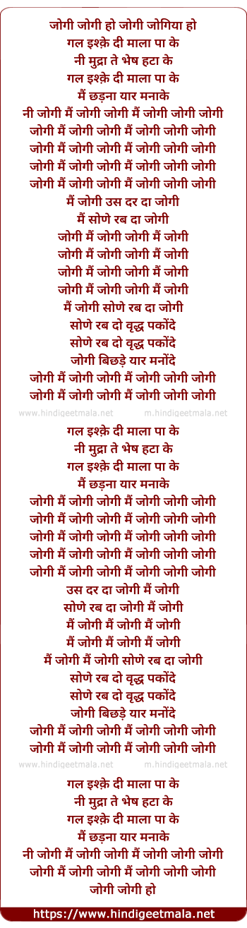 Lyrics of Jogi (Daler Mehndi) - जोगी जोगी हो जोगी जोगिया हो