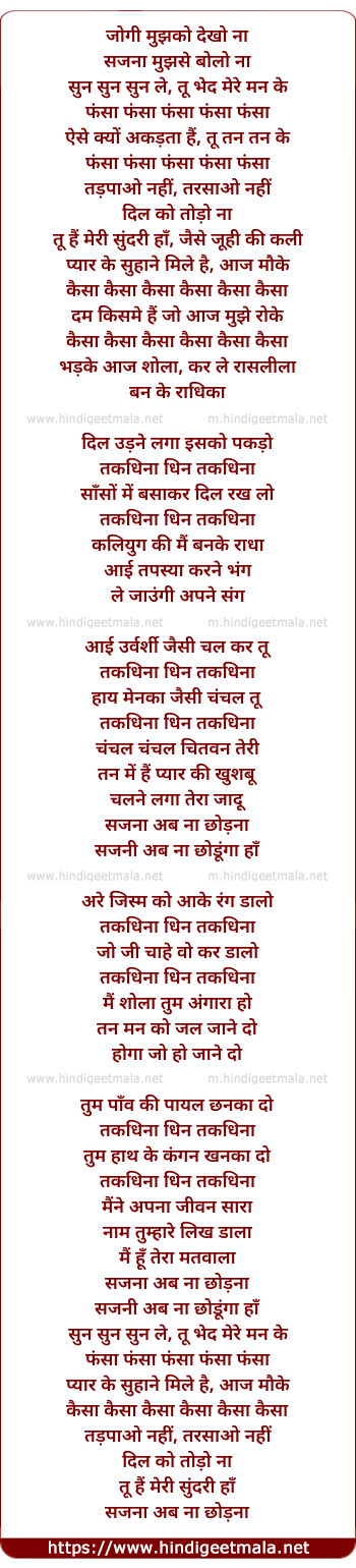 Lyrics of Jogi Mujh Ko Dekho Na - जोगी मुझको देखो ना