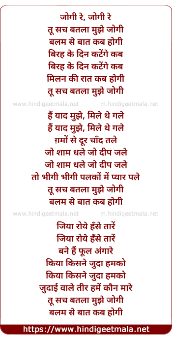 Poetic Translation - Lyrics of Jogi Re Tu Sach Batla Mujhe - जोगी रे तू सच बताला मुझे
