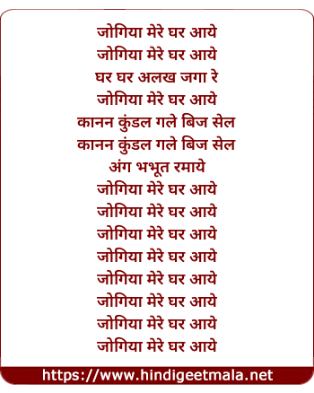 Lyrics of Jogiya Mere Ghar Aaye - जोगिया मेरे घर आये
