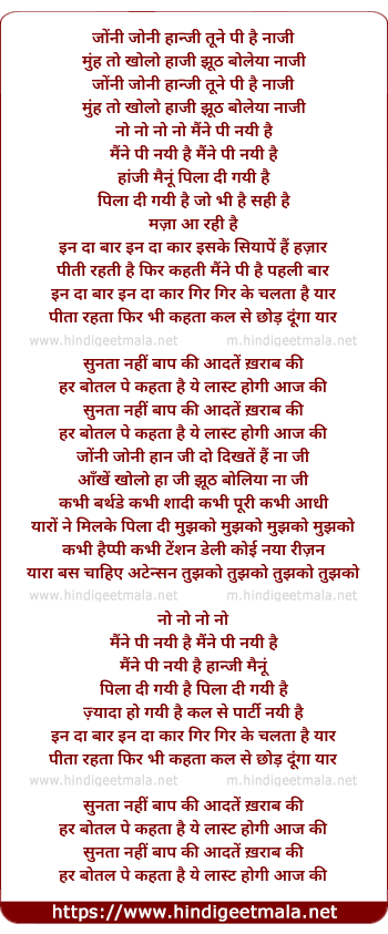Lyrics of Johnny Johnny Haan Ji - जोंनी जोनी हाँ जी