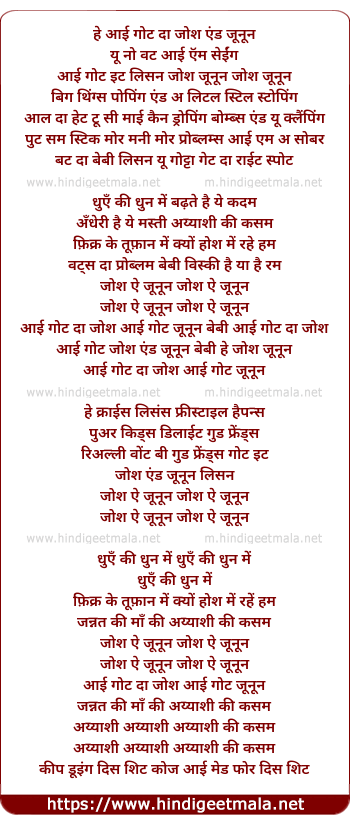 Lyrics of Josh And Junoonn - जोश एंड जूनून