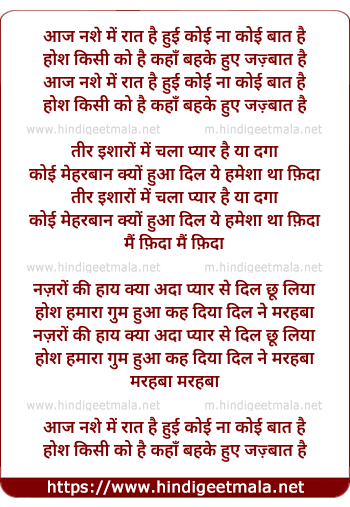 Lyrics of Aaj Nashe Mein Raat Hai - आज नशे में रात है