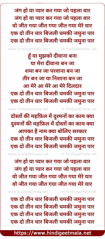 ek do teen char bijali chamki jamuna paar