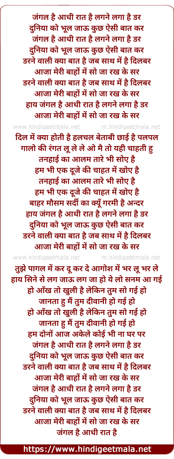 Jungle Hai Aadhi Raat Hai Lagane Lagaa Hai Dar - जंगल है आधी रात है लगने लगा है डर
