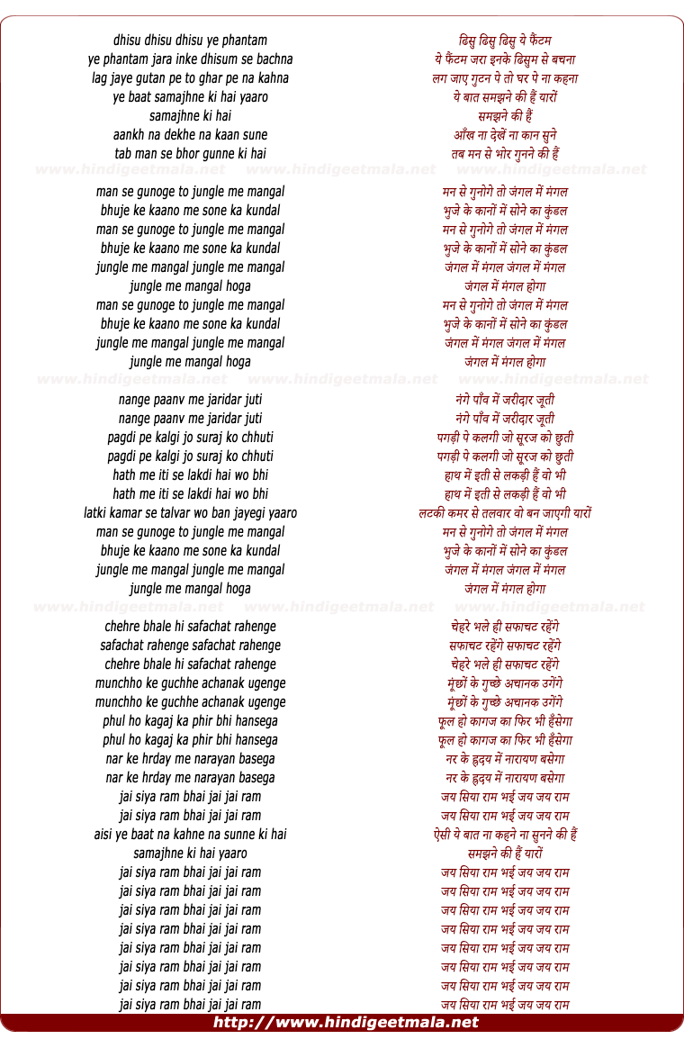 Lyrics of Jungle Me Mangal Hoga - जंगल में मंगल होगा