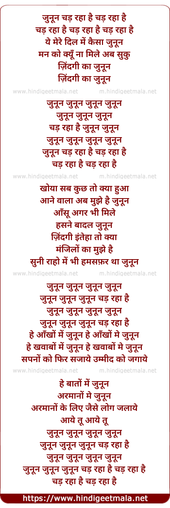 Poetic Translation - Lyrics of Junoon (The Dance Mix) - जुनून (दी डांस मिक्स )