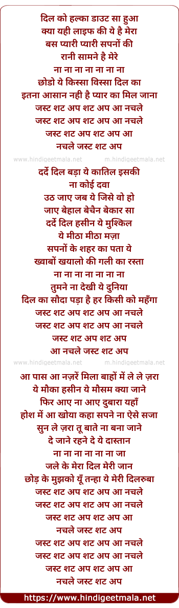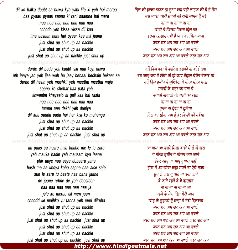Lyrics of Just Shut Up Shut Up Aa Nachle - जस्ट शट अप शट अप आ नचले
