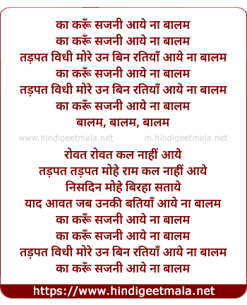 Lyrics of Ka Karoon Sajni Aaye Na Baalam - का करूँ सजनी आये ना बालम
