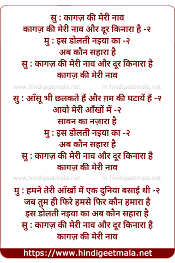Lyrics of Kaagaz Ki Meri Naav Aur Dur Kinara Hai - कागज़ की मेरी नाव और दूर किनारा है