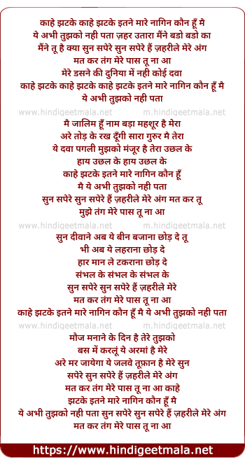 Lyrics of Kaahe Jhatke Itne Maare Nagin, Kaun Hu Main - काहे झटके इतने मारे नागिन, कौन हूँ मैं
