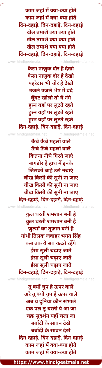 Lyrics of Kaam Jahan Mein Kya-Kyaa Hote... Din-Dahade - काम जहां में क्या-क्या होते...दिन -दहाड़े