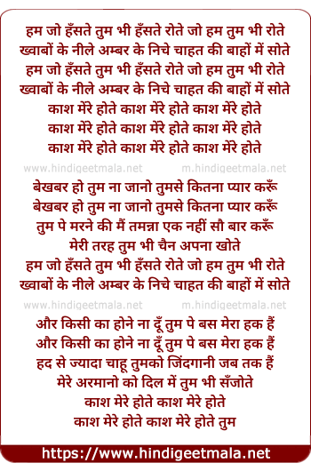 Lyrics of Kaash Mere Hote