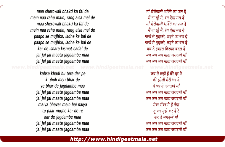 Lyrics of Kab Se Khadi Hu Jagdambe Maa (2) - माँ शेरोंवाली भक्ति का फल दे