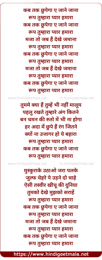 Lyrics of Kab Tak Chupega Ae Jaane Jaana - कब तक छुपेगा ए जाने जाना