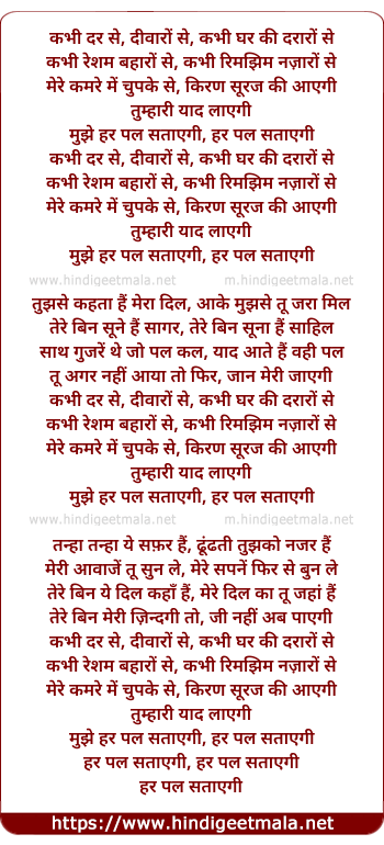 Lyrics of Kabhee Dar Se Diwaro Se - कभी दर से, दीवारों से, कभी घर की दरारों से