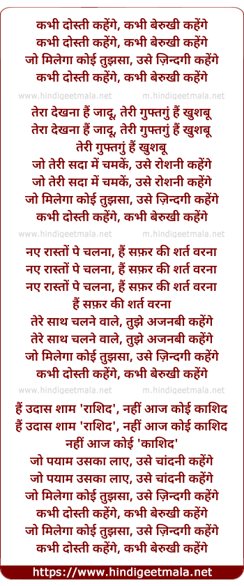 Lyrics of Kabhee Dostee Kahenge Kabhee Berukhee Kahenge - कभी दोस्ती कहेंगे, कभी बेरुखी कहेंगे