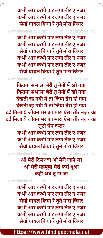 Lyrics of Kabhi Aar Kabhee Paar - कभी आर कभी पार लगा तीर ए नज़र