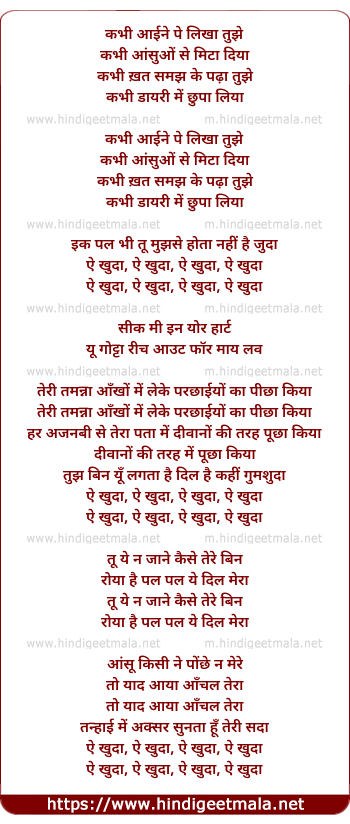 Lyrics of Kabhi Aayine Pe Likha Tujhe - कभी आईने पे लिखा तुझे