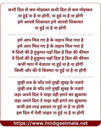 Lyrics of Kabhi Dil Se Kam Mohabbat - कभी दिल से कम मोहब्बत